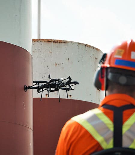 Get the Case StudyWith angled flight, the Skygauge is able to inspect any point 360 degrees around it. This enabled inspection of any industrial assets, regardless of their shape.